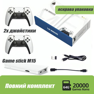 Ігрова консоль M15 Pro Plus 64Gb 30000+ ігор та 2 бездротові джойстики Sega, Nintendo, Junior, 8/16/32 біти, під'єднання до телеві